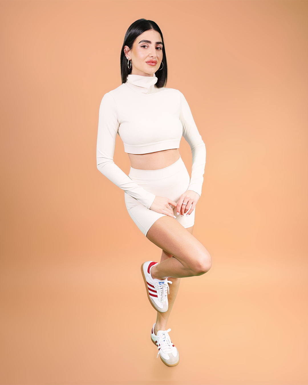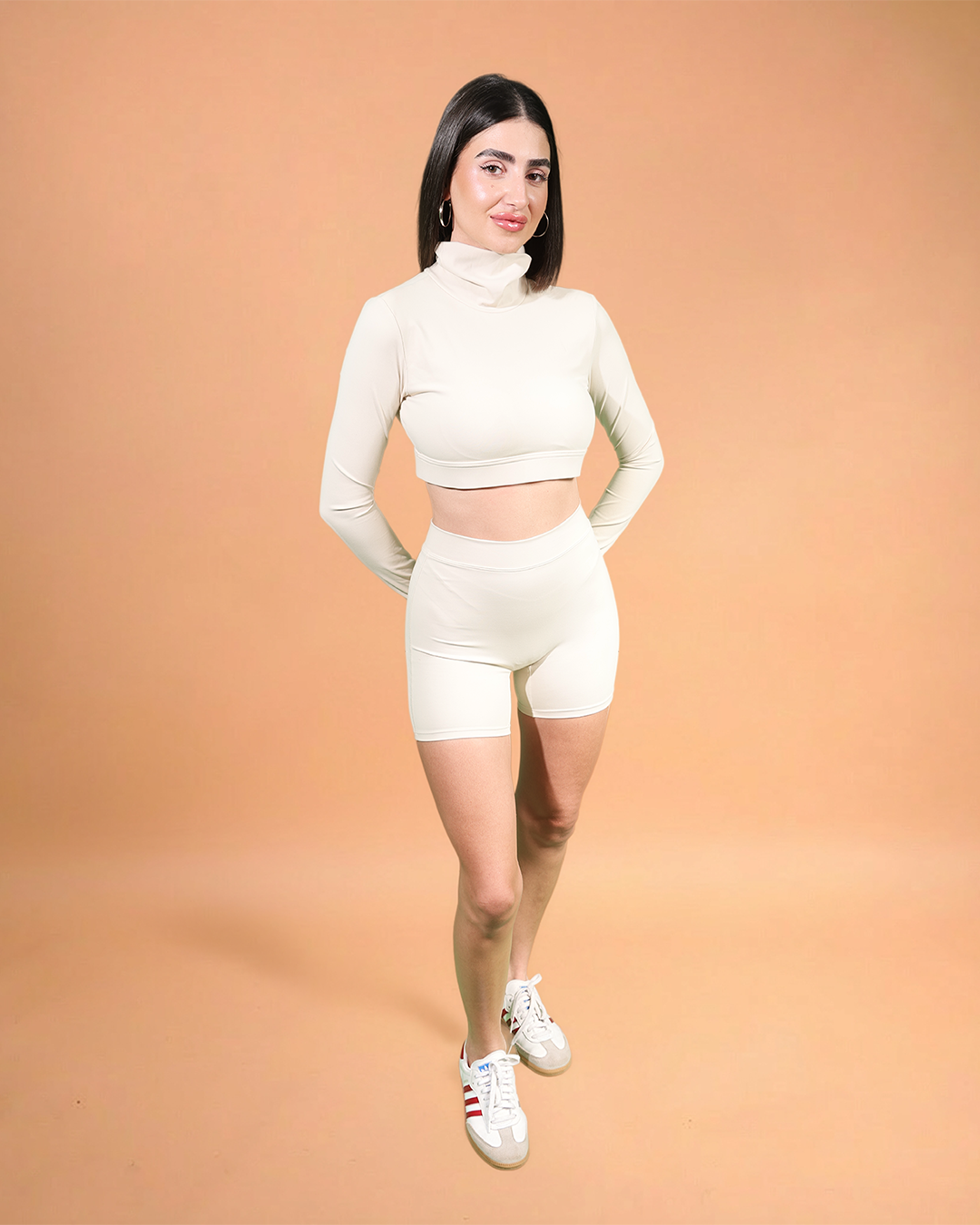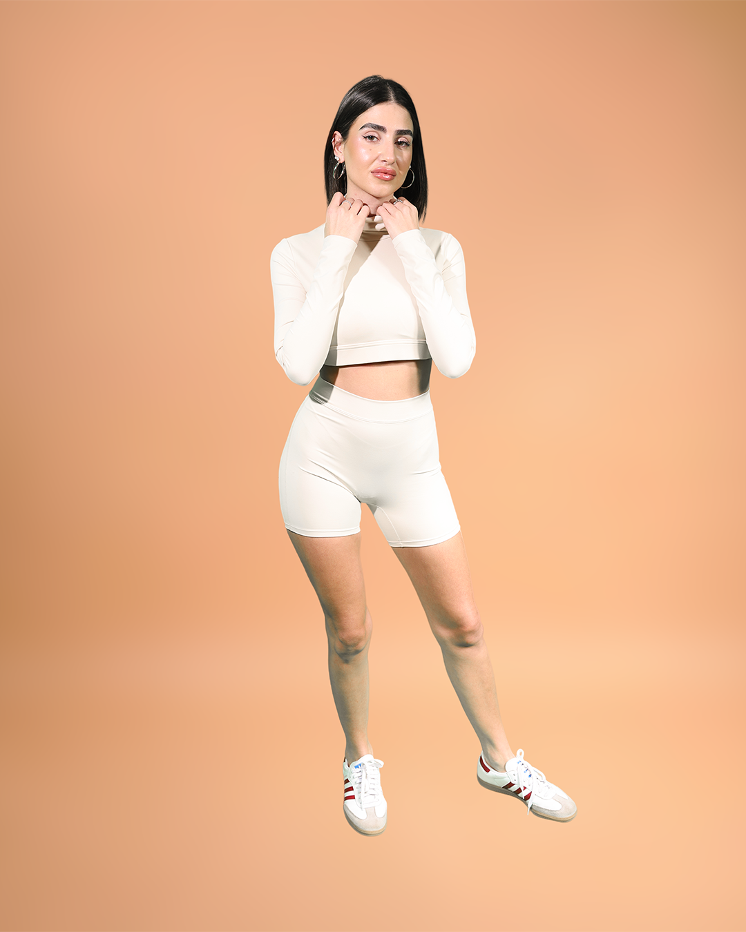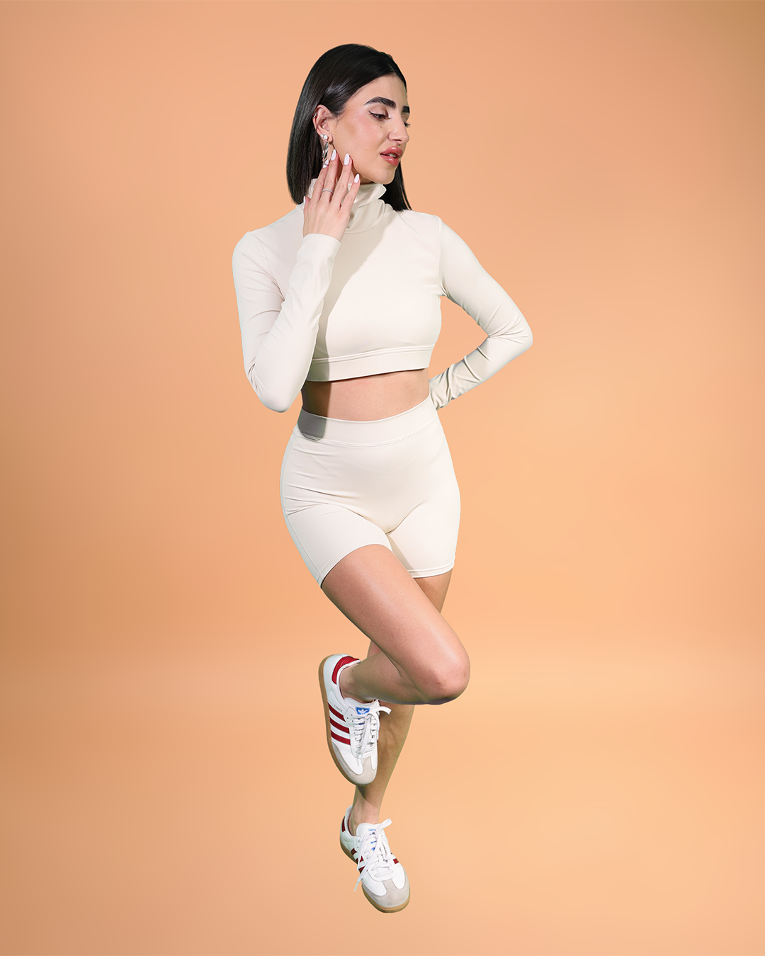 (English) طقم رياضي لتحديد المواقع، تم قميصه من توب بأكمام طويلة مع فتحة خلفية مميزة، وشورت عالي الخصر يبرز القوام بثبات واحة. مادة مطاطية تتحمل الجسم أثناء ممارسة الرياضة أو الاستخدام اليومي.
